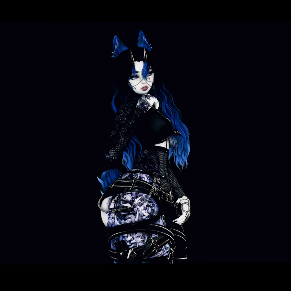 Top Harness || Bottom harness || Gun holster || glasses || Face Mask || Face Chain || Earings || Glasses || Earings || Face Chain || Nosering Chain || Mask ,Necklace || Choker || ,R Arm Sleeve || L Arm Sleeve || R Hand Chain || L Hand Skelly Chain || Lose Belt R || Husky Ears || Husky Tail || Small Horns